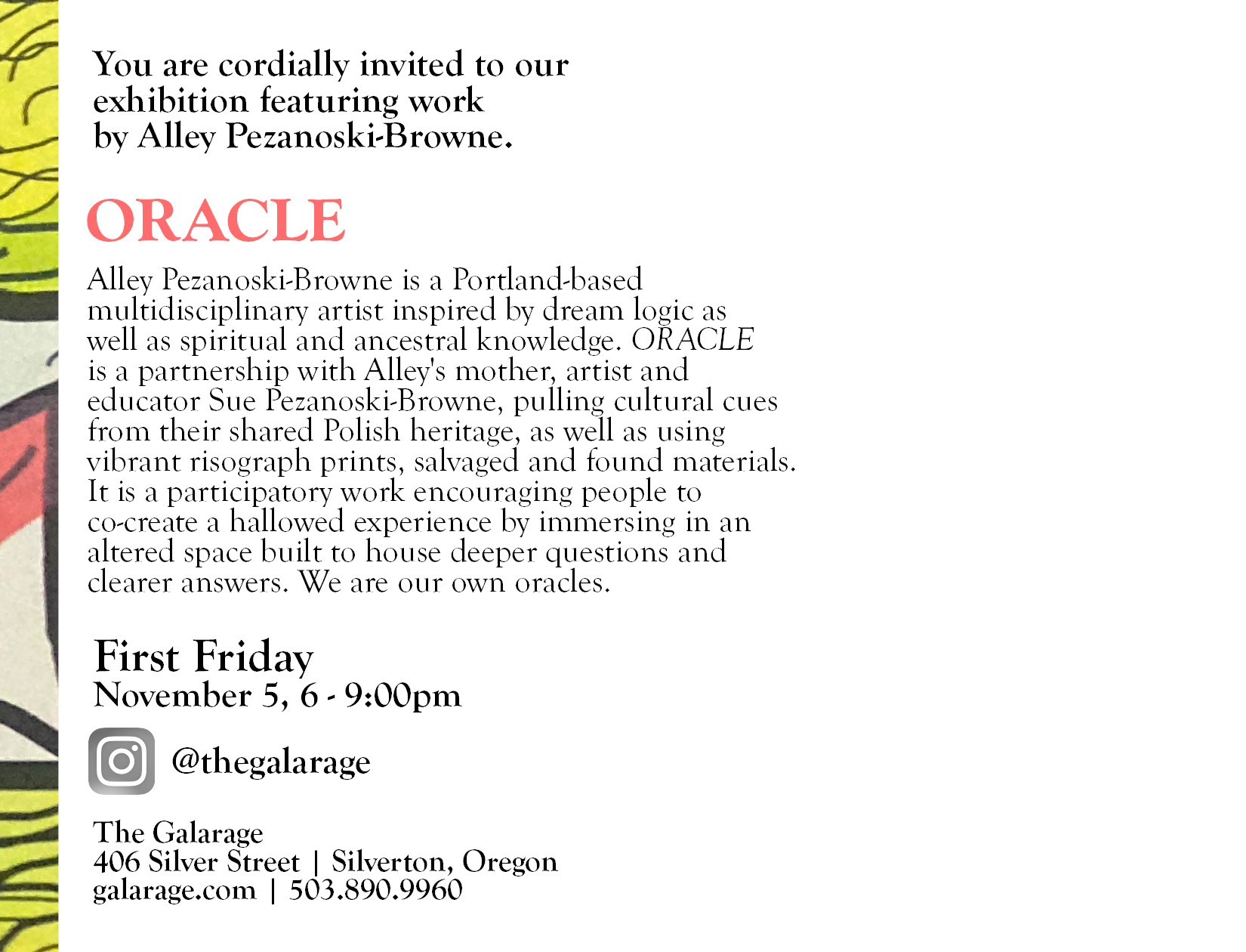 Previous Image Next Image 2021 alley exhibition postcard back-1 Back of postcard for ORACLE installation at The Galarage Like Loading...