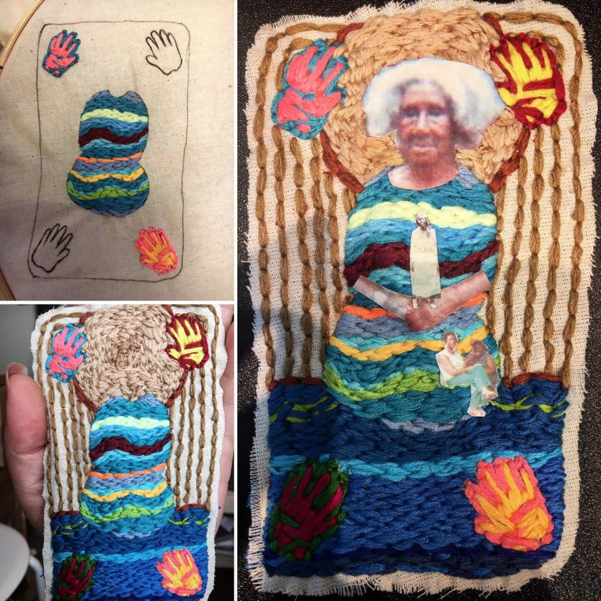 Previous Image Next Image Screen Shot 2021-05-13 at 10.19.29 AM Embroidered Page of Hands card with Great Aunt Ethel, Great Aunt Bertha, Big Mama, and Ainie, for show at Marrow Like Loading...